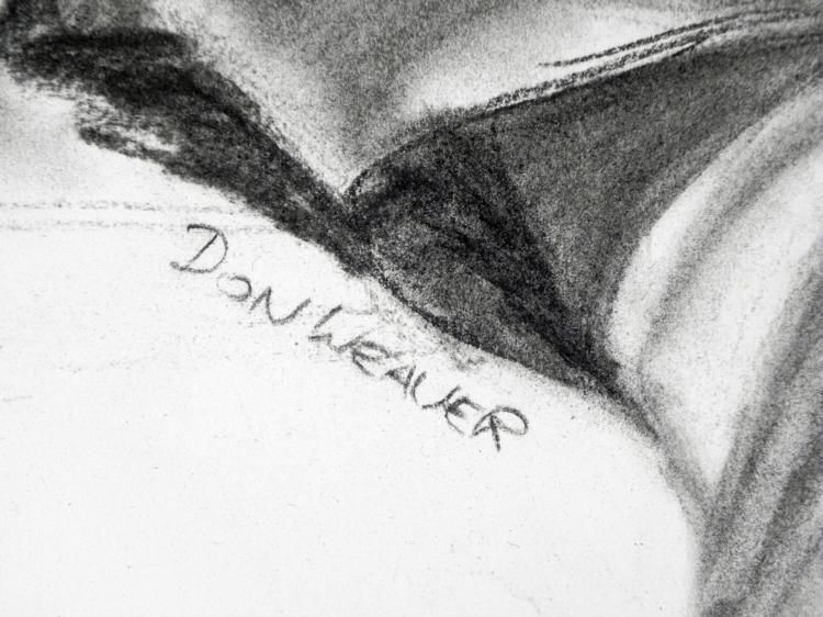 What was I thinking... How am I ever going to get out of this?!?!? * * * * Artist: Don WeaverMedium: Charcoal drawing on paperSignature: Signed in pencil, lower rightSize: 22" x 29"Condition: Very Good; creases to the bottom of the drawing * * These are some of the original pieces that Don offered too potential clients, as part of his portfolio. Most of them were done in the earlier years of his life. * * * * * Don Weaver has over 20 years of experience in advertising, marketing, and graphics; he has the experience and ability to communicate your message in a creative, effective, and memorable way. * Most recently, he spent six years as the Advertising Creative Manager (and Graphics Manager) with The Tampa Tribune. Previous positions included creative director and art director for agencies in Phoenix and Memphis, * production manager for a major printing company, and marketing director for an international nutritional supplement company. In addition to creative strategy development and graphic design, he has extensive experience * in broadcast, video, and digital media production. Don originally started out as a photographer, but soon realized that he was even stronger in design and writing. That photographic background still gives Don a unique perspective that translates into his design * style. * * * * *
