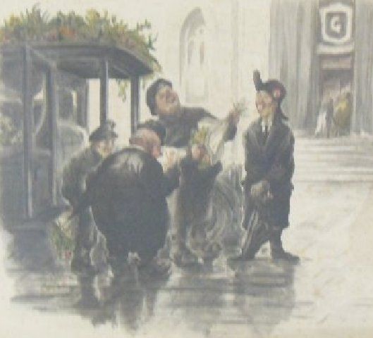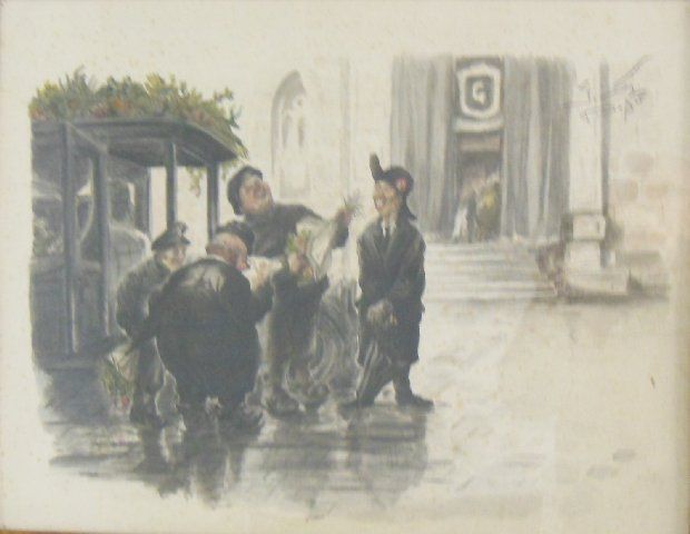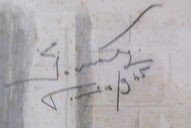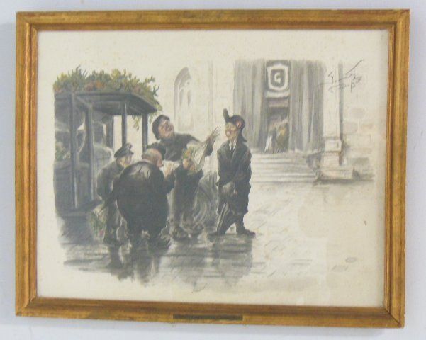 "Paris Street Scene", dated 1945. Image approx. 22" x 28", 25" x 31" with frame.