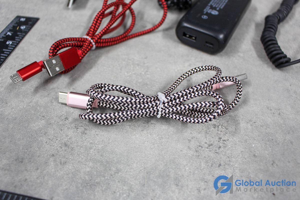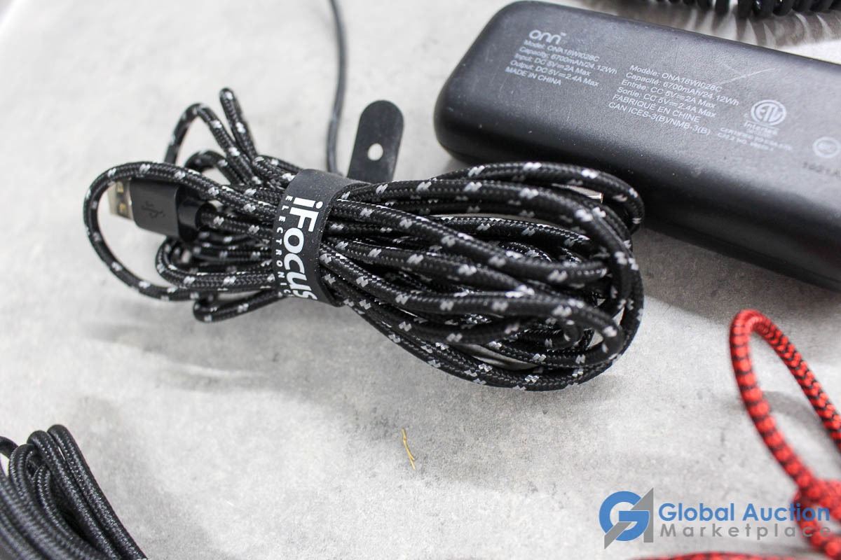 Minster IcarPlay Wireless Plus for iPod/FM Transmitter/Charger for iPOd; MIXIT Coiled 3.5 mm Auc Cable; Black Onn Portabl Charger 6700 Bank; (4) Type C Phone Charger Cords of Varying Lengths