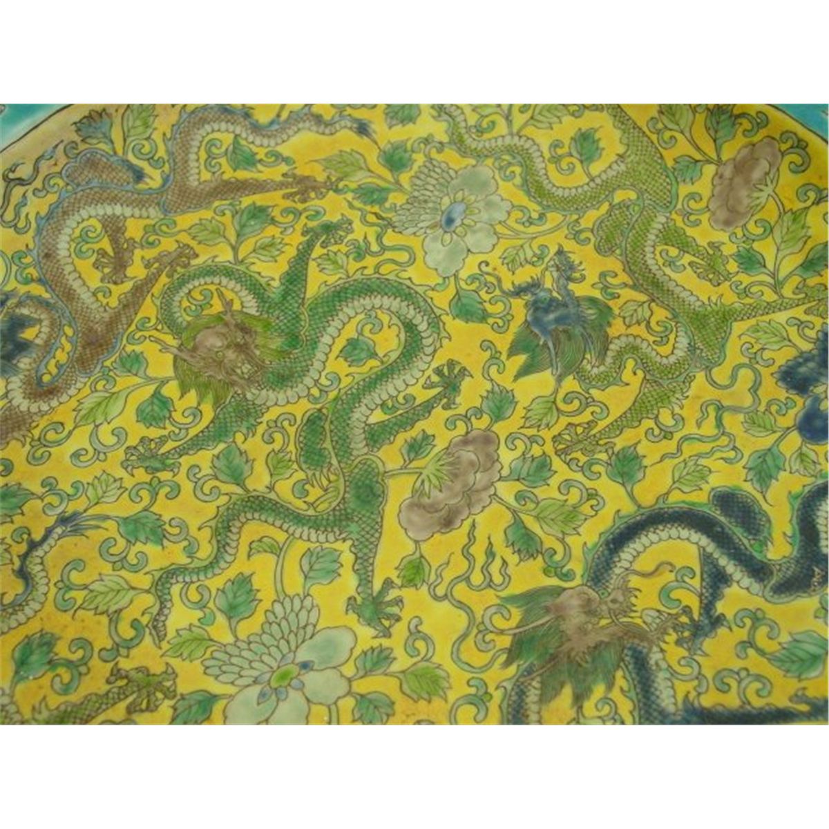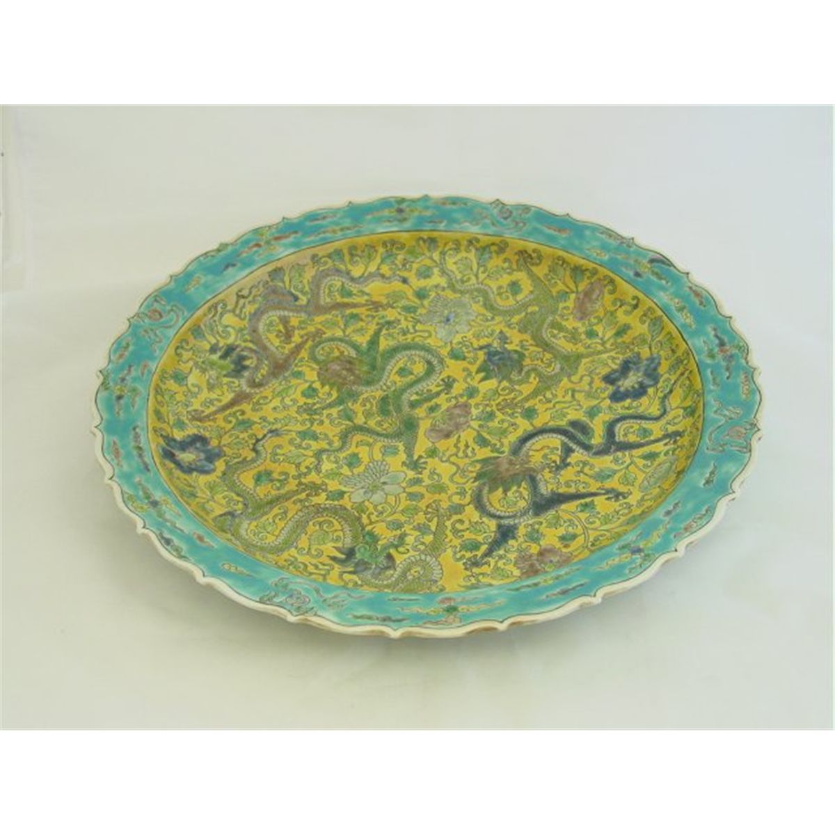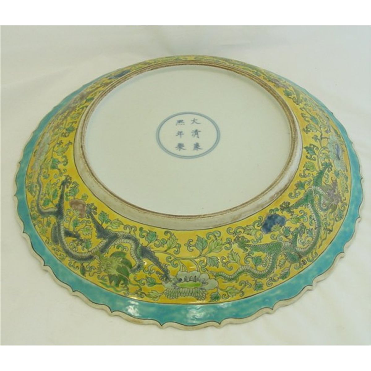 Qing Dynasty mark. Approx. 17.5" Diam. x 3" H Please read our terms of sale.