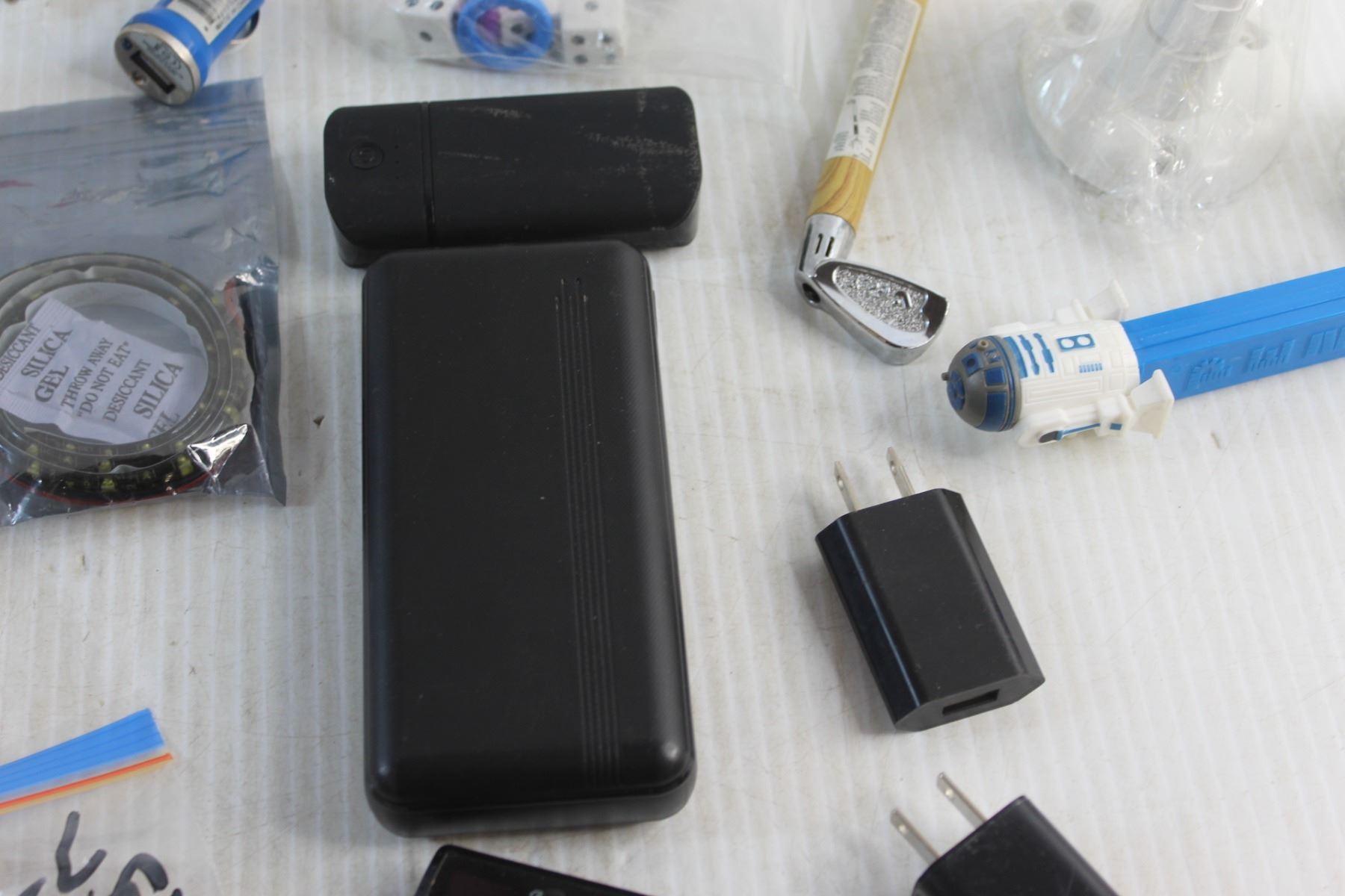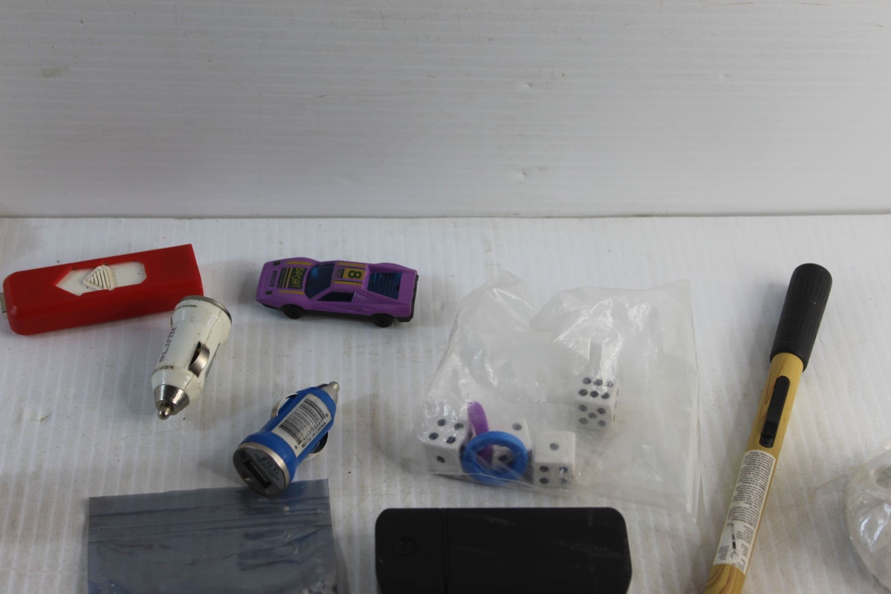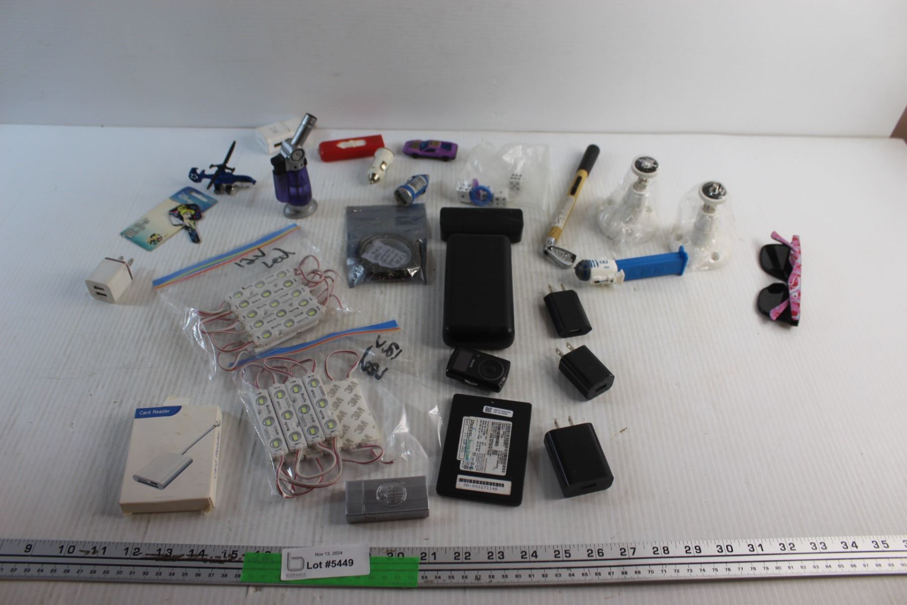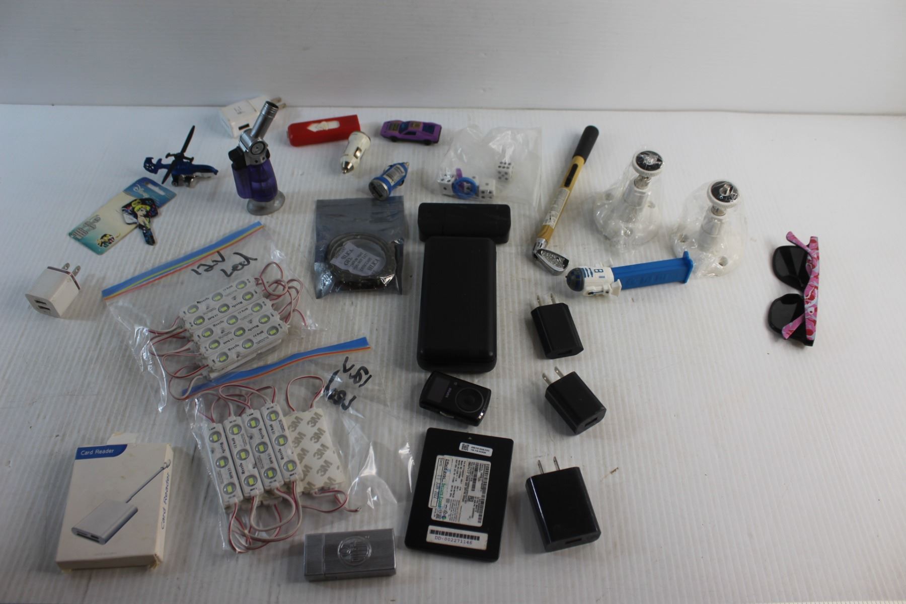 Charging Blocks, Torch Lighter, Power Banks, Hard Drive, Dice, Glasses, 12V LED Lights and Misc.