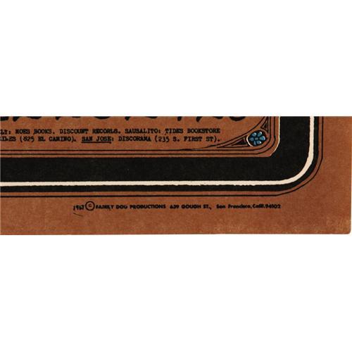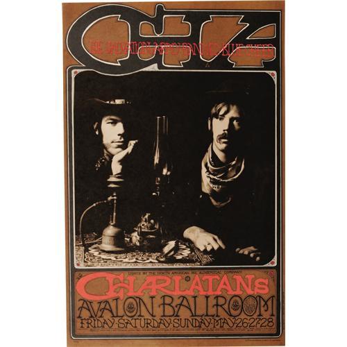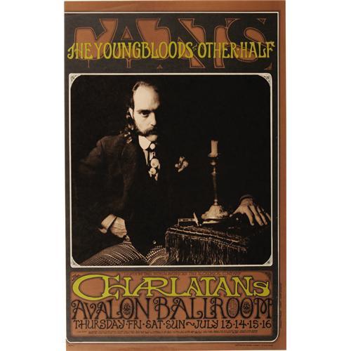 <B>Charlatans "Triptych" Avalon Concert Poster Group, FD-63, 67, 71 (Family Dog, 1967).</B></I> The Charlatans were the Great Lost American Rock Band. Very influential within their time, the band was well-known in the Northern California music scene; their practice of wearing Edwardian clothing helped kick-start the hippie trend of wearing old, funky clothing. Their only album was released after a key member (Dan Hicks) left the band, so their true greatness was never captured for posterity. This fascinating lot includes all three Rick Griffin/Herb Greene/Bob Fried-designed posters for various, summer of '67 shows that were intended to be displayed together. It's not easy to determine the printings of these items, but we believe what we have are a third printing of FD-63 (measuring approximately 14" x 21 3/4"), and first printings of FD-67 (approximately 13.5" x 21.75") and FD-71 (13.75" x 22"). The brown backgrounds on all three are very well matched, and the paper stock on all three is a matching light tan, making this an exceptionally attractive NM set.<BR><BR><b>Shipping:</b> Flat Material, Small (<a target="_blank" href="http://www.heritageauctions.com/common/shipping.php">view shipping information</a>)