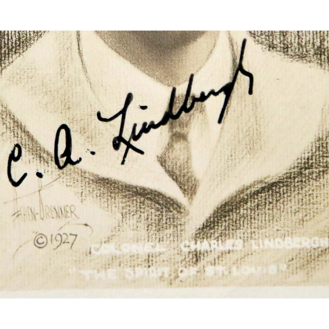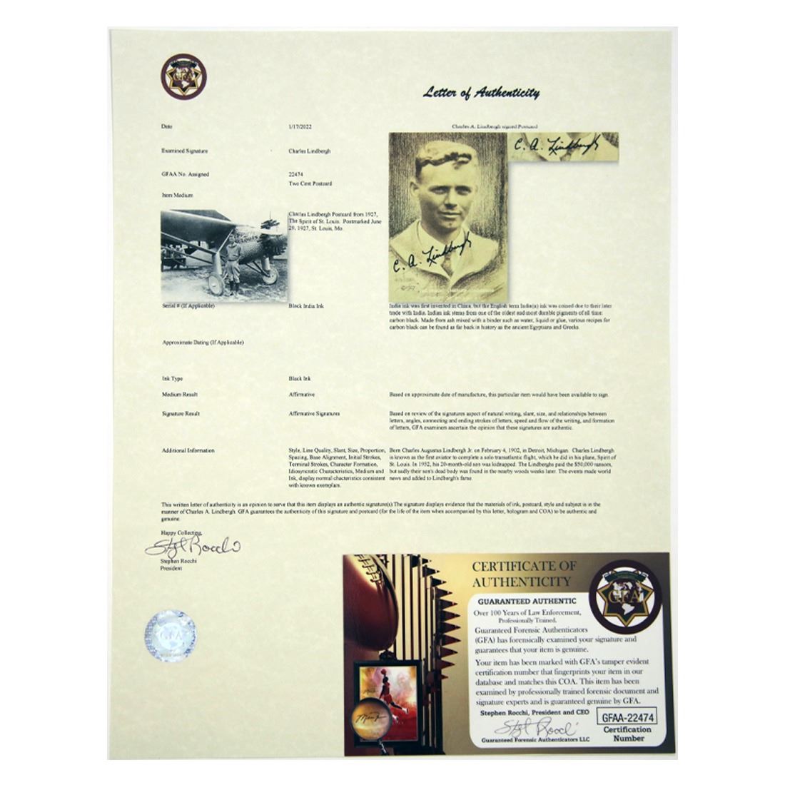 Charles Lindbergh (February 4, 1902 – August 26, 1974). 4.5 x 6 Charles Lindbergh signed black and white Cabinet Card. Vintage 1930s Pilot Charles Lindbergh Cabinet Card-Spirit of St. Louis 1st Trans-Atlantic Flight. Signed Boldly in Black Ink. In the 1920s, hotel owner Raymond Orteig was offering a prize of $25,000 to the first pilot to make the journey from New York to Paris without making any stops. Lindbergh wanted to win this challenge and enlisted the support of some St. Louis businessmen. Several others had tried and failed, but this didn't deter him. Lindbergh took off from Roosevelt Field in Long Island, New York, on May 20, 1927. Flying a monoplane named Spirit of St Louis, he crossed the Atlantic Ocean. Lindbergh landed at Le Bourguet Field near Paris after 33.5 hours in the air. During his groundbreaking trip, he had traveled more than 3,600 miles. Upon his arrival, Lindbergh was welcomed by more than 100,000 people who came to see aviation history in the making. After his daring feat, large crowds enthusiastically greeted wherever he went. Lindbergh received many prestigious honors, including the Distinguished Flying Cross medal from President Calvin Coolidge. This item has been professionally custom matted and framed. Comes with a Letter of Authentication from Guaranteed Forensic Authenticators, along with the GFA guarantee of authenticity.