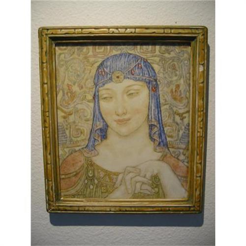 This breath taking portrait 14 by 12 inch of a women oil on panel is in pastel vibrant colors on board. It has its original ceramic like wood frame. Charles Allen Winter a Cincinnati Ohio Artist was born in 1869 and died 1942. Multiple museum references. His style, Landscape, Illustration and his method illustration, painting - medium oil - pastel - painting. subject- city scape, city views, coastal, figure - genere- landscape, marine, new york city view. The actual art 12 inch by 10 inch. The artist was was active and lived in Massachusettes. He is highly sought after.