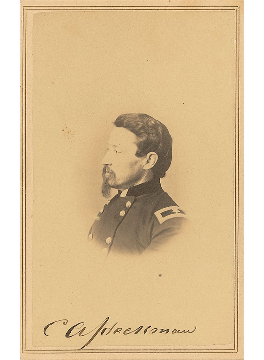 Union brigadier general (1822–1896) who fought in many early battles in North Carolina including Roanoke Island, Fort Macon, and Kinston. Original 2.5 x 4 carte-de-visite photo by an anonymous studio, signed below the image in black ink, “C. A. Heckman.” In fine condition, with lengthy pencil notations on reverse.