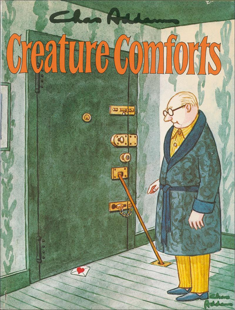 Signed book: Creature Comforts. First edition, first printing. NY: Simon & Schuster, 1981. Hardcover with dustjacket, 8.5 x 11. Signed and inscribed on the first free end page, “For the McCuds, Chas. Addams 1981.” In fine condition, with a bit of mild toning and wear to dustjacket.