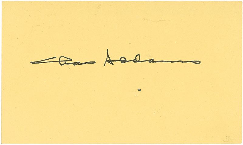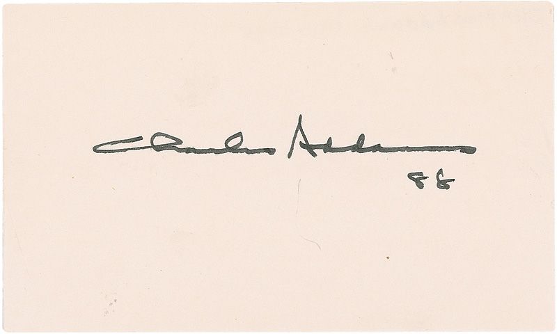 Two felt tip signatures, “Charles Addams” and “Charles Addams 88,” on individual off-white and yellow 5 x 3 cards. In fine condition.