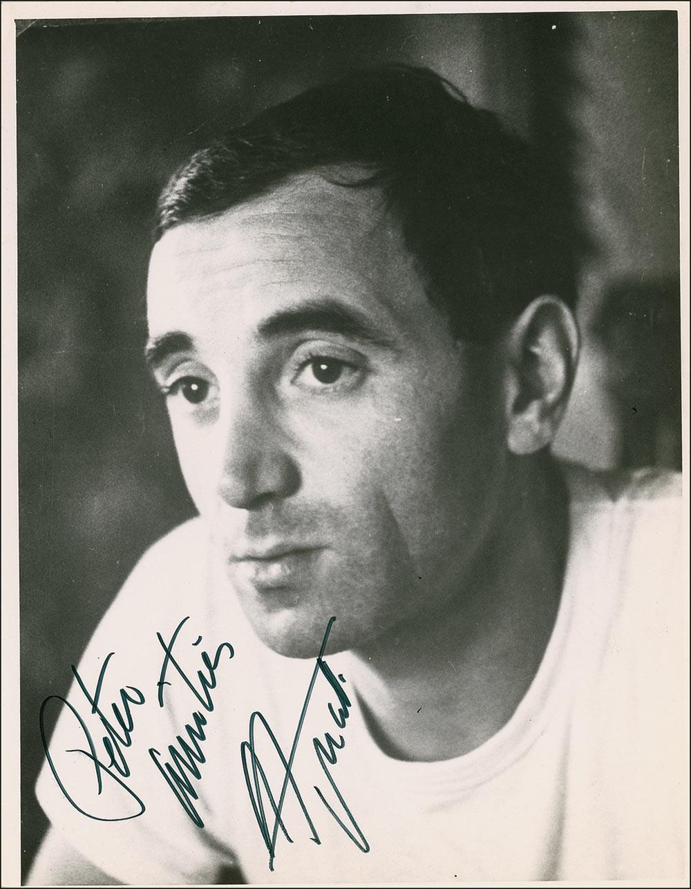 French singer, songwriter, actor, and activist considered one of France’s most popular entertainers. Glossy 6.5 x 8.5 photo, signed and inscribed in black felt tip. In very good condition, with a few surface creases, trimmed edges, and small tear to lower border. Pre-certified PSA/DNA and RRAuction COA.