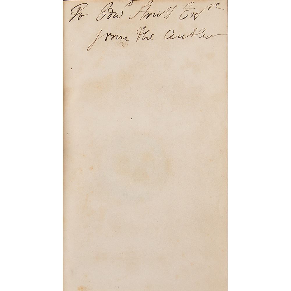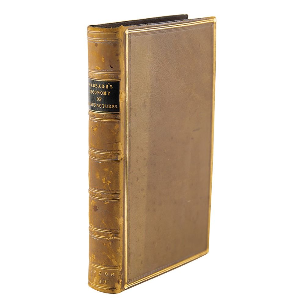 Signed book: On the Economy of Machinery and Manufactures. Third edition enlarged. London: Charles Knight, 1833. Leatherbound hardcover with marbled endpapers and textblock edges, 4.5 x 6.75, 392 pages. Signed and inscribed on a free end page, "To Edw'd Strull Esq're, from the Author." Autographic condition: fine, with light soiling to the signed page. Book condition: VG/None, with a bookplate to front pastedown, sunning to the binding, nicks and dings to spine, and overall staining to the title page, but other interior pages remarkably clean.