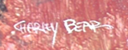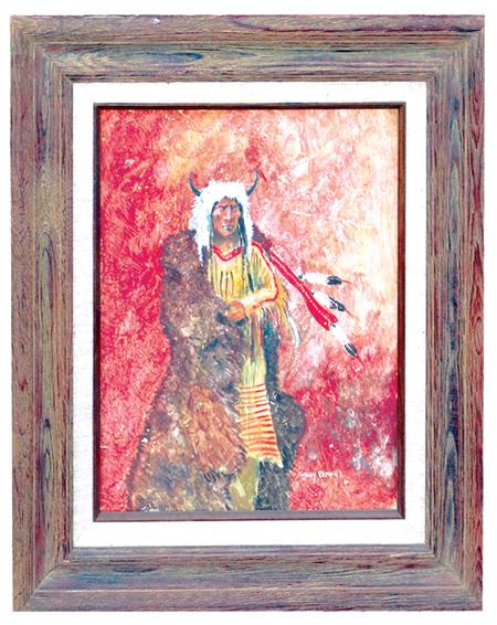 Signed original gouache on board depicting a Crow Buffalo Dancer. Signed "Charley Bear". Condition: good, minor scratching. 13-1/2 x 10-1/2" (20-1/2" x 17-1/2 framed)
