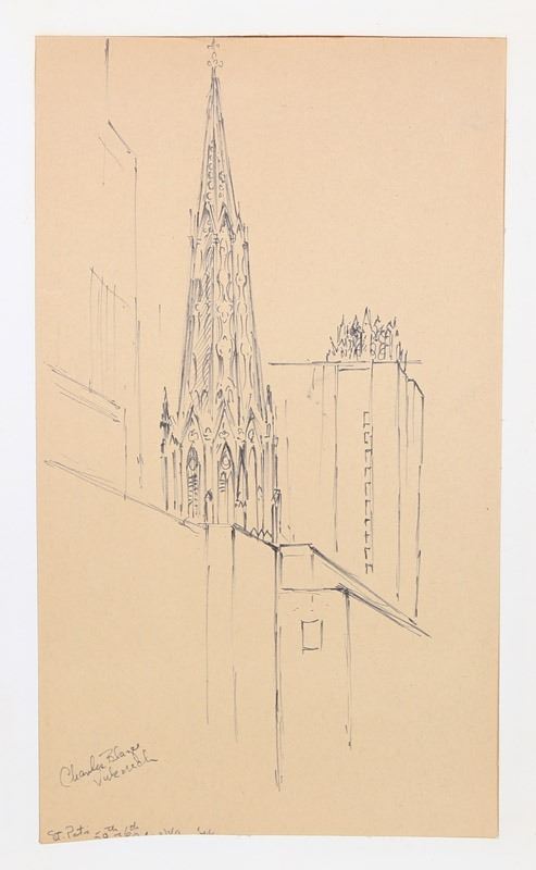 Charles Blaze Vukovich, St. Patrick's Cathedral, Ink Drawing