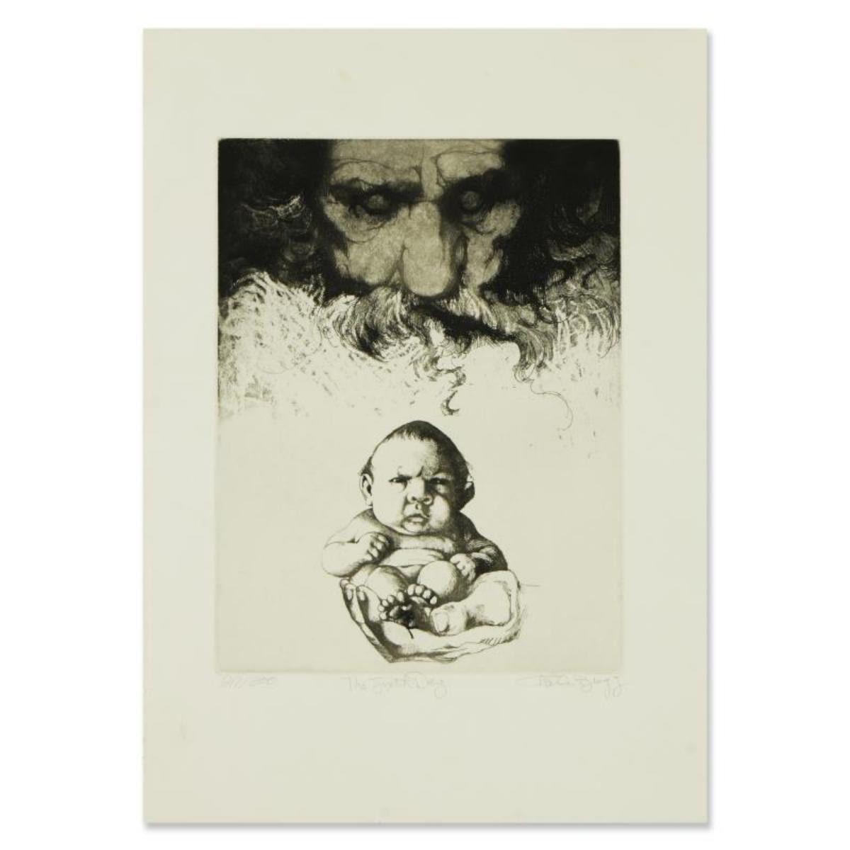 "The Sixth Day" is a limited edition etching on paper by Charles Bragg (1931-2017), numbered and hand signed by the artist. Includes Letter of Authenticity. Measures approx. 12.5" x 18" (border), 9" x 11.5" (image). Reference #: 246359.