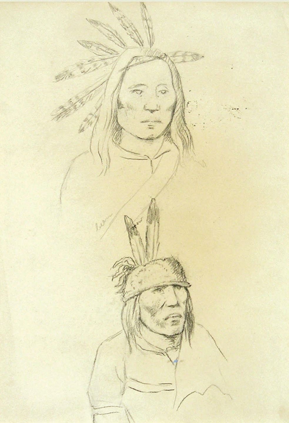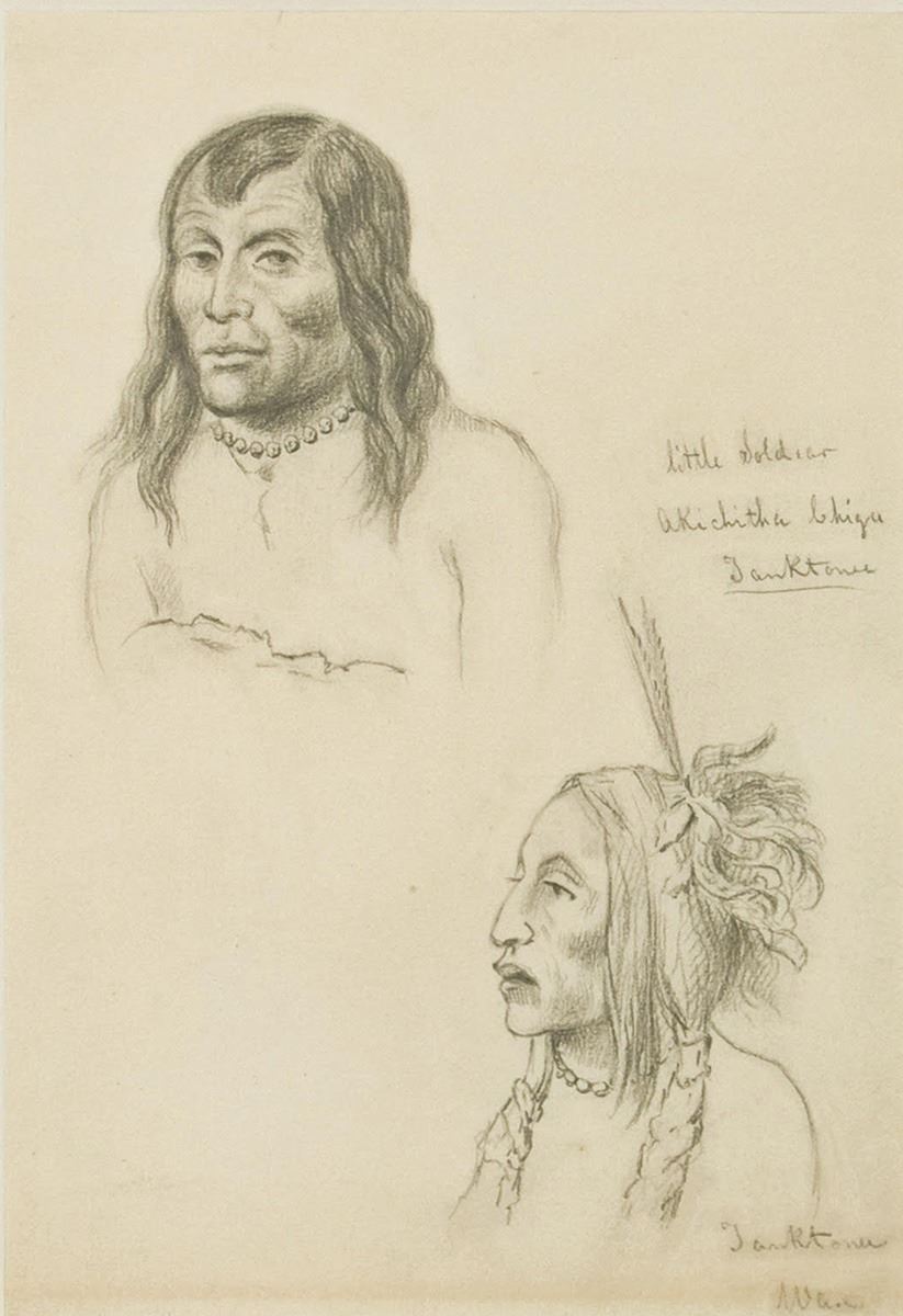 "Portrait of a Little Soldier, Yanctonais Chief and Unidentified Follower" 13.625 x 9.62