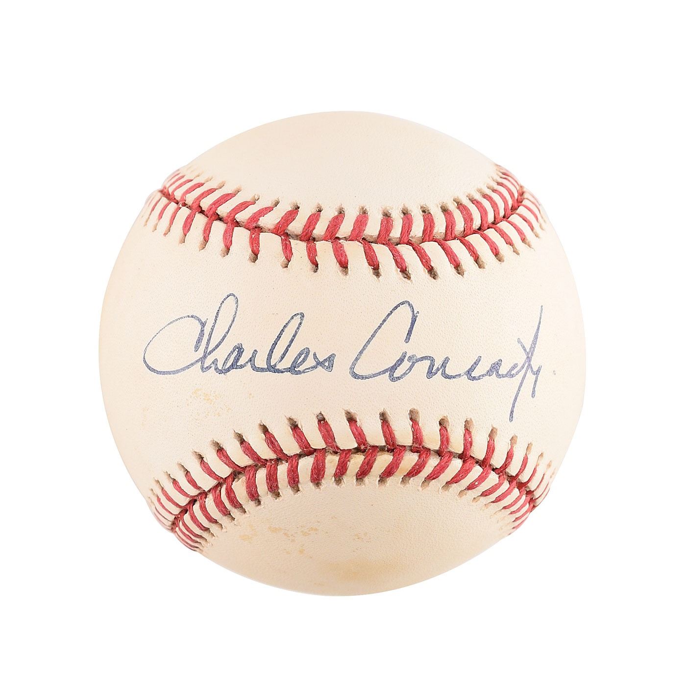Official Rawlings American League (Budig) baseball signed on the sweet spot in black ballpoint, "Charles Conrad, Jr." In fine condition, with light toning to one panel.