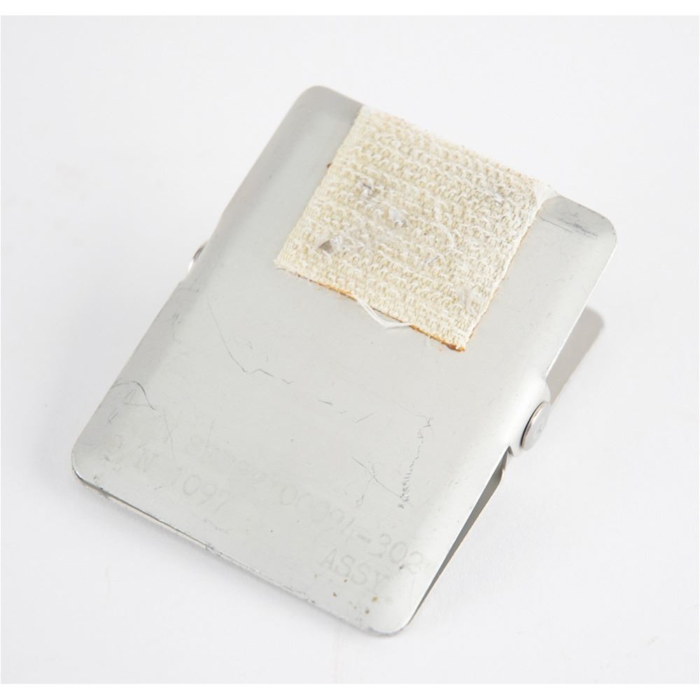 Apollo XII was the first lunar landing to perform two extensive surface explorations where Conrad and Bean accumulated a large amount of lunar dust on their space suits and flight equipment. During their 31-hour surface stay, this clip was exposed to lunar dust carried into the LM by the crew. The included analysis of the embedded lunar material describes observed plagioclase feldspar, blackish extremely angular fragmented agglutinate-like grains, and greenish-yellow grains being olivine.