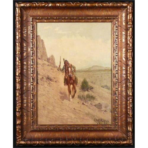 Charles Craig (1846-1931) Warrior on Trail Oil on Canvas Signed lower right 12" x 16"