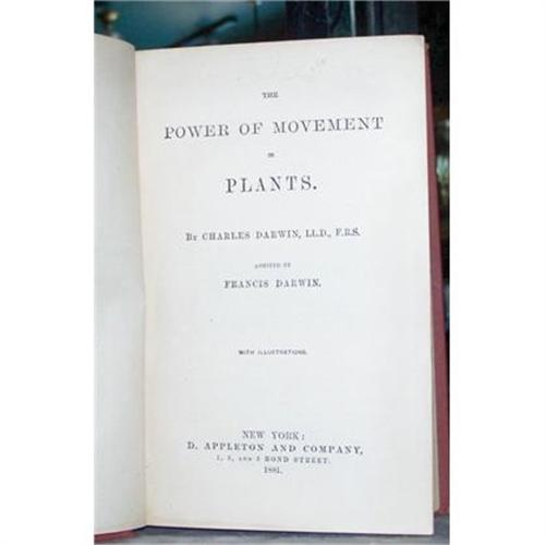 The power of movement in plants, by Charles Darwin 1881. new york D.appleton and company. the book is tight.cover is a little faded but good for its age.