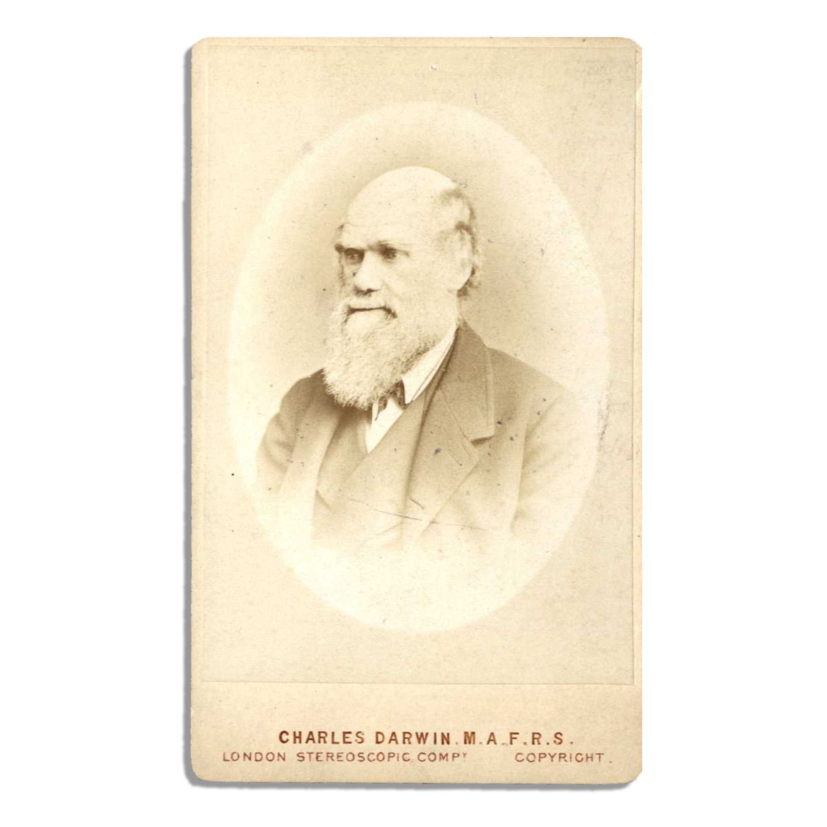 Charles Darwin CDV circa 1862, shortly after his explosive ''Origin of the Species'' was published. The 2.25'' x 3.5'' albumen print of the renowned English naturalist is mounted to a 2.5'' x 4'' card. Below his image, the initials indicate his election as a Fellow in the Royal Society, the U.K.'s national academy of sciences. Minor soiling to photo, with a London Stereoscopic and Photographic Company backstamp, else very good.