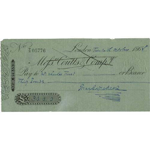 Charles Dickens Signed Bank Check Oct 20, 1868 Charles Dickens Signed Bank Check
