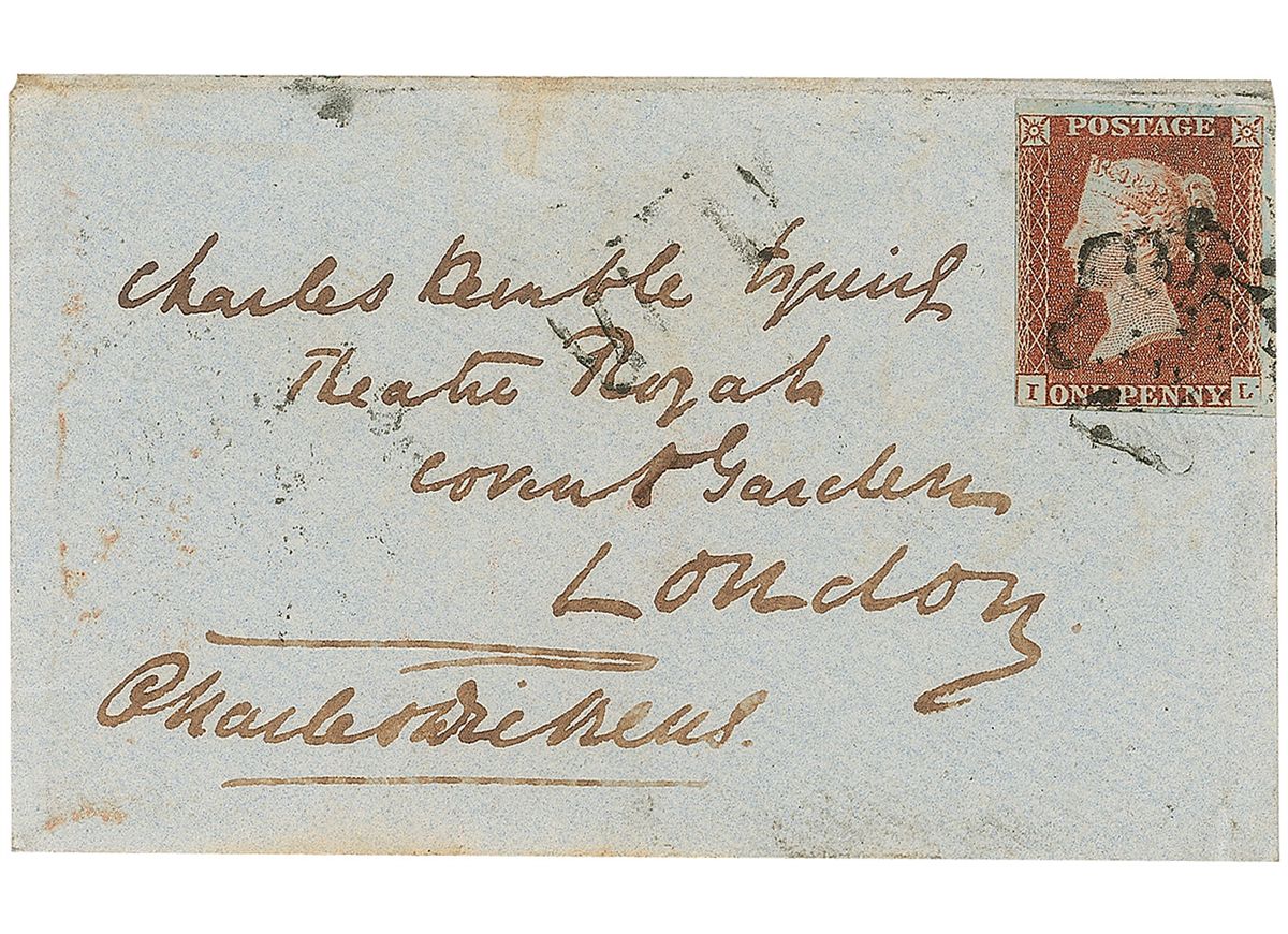 Hand-addressed and signed envelope, 3.75 x 2.25, addressed by Dickens to a gentleman at “Theatre Royal, Covent Garden, London” and signed below, “Charles Dickens.” Postmarked September 5, 1842, on the reverse. Scattered marks and soiling, otherwise fine condition.