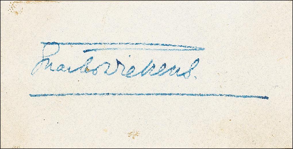 Ink signature, “Charles Dickens,” on an off-white 3 x 1.5 slip, affixed to a slightly larger off-white clipped slip. Vertical fold to right side, a bit of trivial skipping to signature, and some scattered light toning, otherwise fine condition.