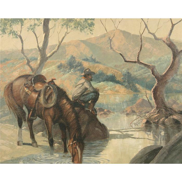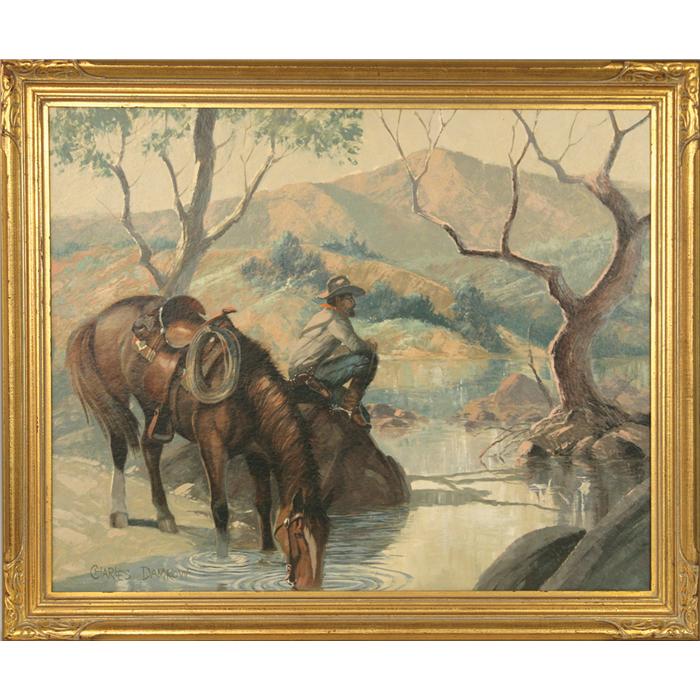 Charles Damrow (1916-1989) Watering Hole. 24" x 30" oil on canvas. Signed lower left. (est $2,000-3,000)