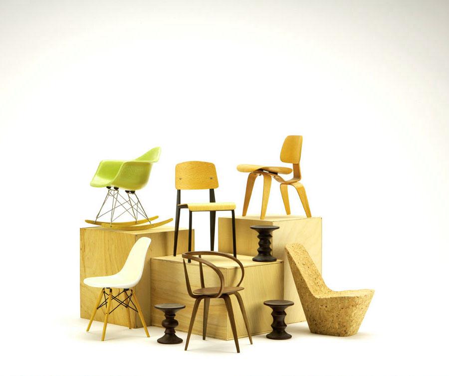 Edition: Eames designed "DCW", "RAR", Dowel Chair, 3 Time-Life stools, Nelson "Pretzel" chair, Prouve "Standard" chair and Jasper Morrison chair