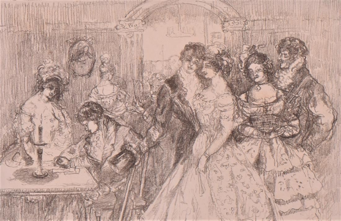 plate 5 from The Balzac Set 1899 Signed, titled and dated '99 on the stone, signed in pencil. This lithograph belonged to the Balzac Set of six prints published in 1899 and exhibited by the Gallery in 1900. IN 1899 Conder for a while lived at William Rothenstein's house at 1 Pembroke Cottages, Edwarde's Square. The former had been practicing lithography since 1893 and introduced his guest to the process by candlelight in his garden studio. In The Life and Death of Conder by John Rothenstein, 1938 pp.166-168 he considered that the Balzac Set had more dynamic force than any other work of Conder's. Estimated more than 100 yrs old. (Pangaea Auctions) Size and/or Weight: See Measurement Photo. (Photos Represent The Lot Condition.)