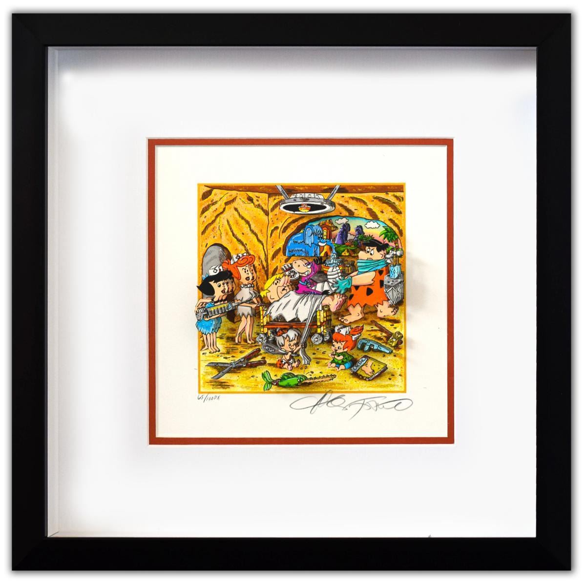 Artist: Charles Fazzino. Medium: 3D Construction Silkscreen Serigraph. Title: OPERATION BEDROCK. Size (Unframed): 8" x 9". Measures approx. (Framed): 16" x 16". Certificate of Authenticity: From the publisher. Additional: Custom framed. Reference# 15045.