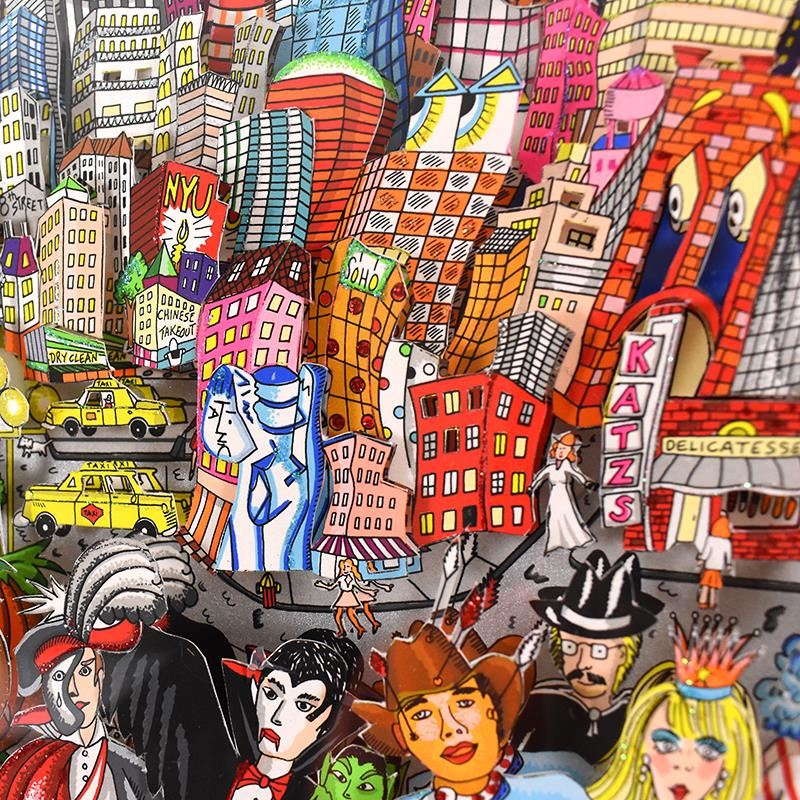 "Ghosts Goodtimes" is a 3D limited edition silk screen construct on paper by Charles Fazzino, numbered 134/150 and hand signed by the artist. This piece comes custom framed. Includes Certificate of Authenticity. Measures approximately 24.5" x 18" (framed), 16" x 10" (image).