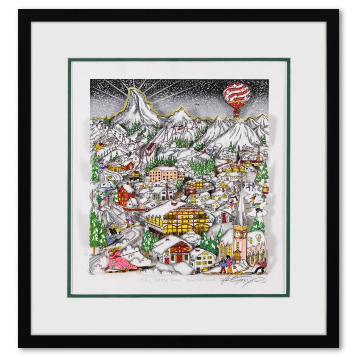 "Ski, Skate, Snow...Spectacular (Green)" is a 3D limited edition silk screen construct on paper by Charles Fazzino, numbered and hand signed by the artist. This piece comes custom framed. Includes Certificate of Authenticity. Measures approximately 17.5" x 19" (framed), 11" x 13" (image). Reference #: 255654