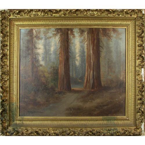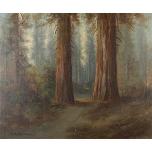 Charles Harmon (1859-1936) Oil on Canvas, Path Through The Sequoia, 20" x 24", signed lower left