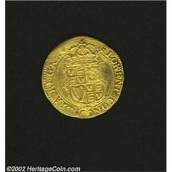 Charles I. Gold Unite ND (1625-42), Second bust left. Crowned shield with slight garnish, S-2690, lightly cleaned VF with a few spots of striking weakness. Important notice: We expect to be auctioning lots at the rate of 200-250 per hour. Sometimes eBay Premier live bid software cannot keep up with that pace, so we strongly recommend that you place a realistic proxy bid now as insurance to avoid disappointment. Also please note that all Heritage/CAA lots purchased through eBay Premier carry a 20% Buyer's Premium. Please make sure you read the Terms and Conditions.
