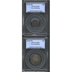 <TABLE cellSpacing=0 cellPadding=0 width="100%" bgColor=#000000 border=0><TBODY> <TR><TD width="100%"><TABLE cellSpacing=1 cellPadding=3 width="100%" border=0><TBODY><TR><TD width="100%" bgColor=#79735c><FONT face=arial color=#ffffff size=3><B>Description</B> </FONT></TD></TR><TR><TD width="100%" bgColor=#ffffff><FONT face=arial size=2><B>Charles I Hammered Silver,</B></I> 2 Pence XF45 PCGS, King in dotted circle, Sixpence VF35 PCGS without inner borders, Shilling VF25 PCGS dotted circles and Shilling XF40 PCGS, Spink 2787. An attractive group of English hammered coins. (4 coins) </FONT></TD></TR></TBODY></TABLE></TD></TR></TBODY></TABLE><BR><A name=PricesRealized></A><TABLE cellSpacing=0 cellPadding=0 width="100%" bgColor=#000000 border=0><TBODY><TR><TD width="100%"><TABLE cellSpacing=1 cellPadding=3 width="100%" border=0><TBODY><TR><TD width="100%" bgColor=#79735c><A name=PR><FONT face=arial color=#ffffff size=3><B>Previous Prices from Heritage Auctions</B> </FONT></A></TD></TR><TR><TD bgColor=#f6f6ed>No Prior Data Recorded </TD></TR><TR><TD bgColor=#ffffff><FONT face=arial size=1 ?>PLEASE NOTE: All prices realized reflect the final hammer price PLUS the buyer's premium in auctions that charge a buyer's premium. Each item has a notation at the top of the listing indicating whether that lot included a buyer's premium. Example: A item that sells with a final hammer price of $100 and a 20% buyer's premium will display with a price realized of $120. All information listed is intended to be as accurate as possible, but errors are possible. Please use this guide carefully and inform us of any inaccuracies. </FONT></TD></TR></TBODY></TABLE></TD></TR></TBODY></TABLE><BR><TABLE cellSpacing=0 cellPadding=0 width="100%" bgColor=#000000 border=0><TBODY><TR><TD width="100%"><TABLE cellSpacing=1 cellPadding=3 width="100%" border=0><TBODY><TR><TD width="100%" bgColor=#79735c colSpan=6><FONT face=arial color=#ffffff size=3><B>Price Guide*</B> </FONT></TD></TR><TR bgColor=#f6f6ed><TD align=middle><B>Grade</B> </TD><TD align=middle><B>Coin World<BR>(Trends)</B> </TD><TD align=middle><B>Numismedia<BR>Retail</B> </TD><TD align=middle><B>Numismedia<BR>Wholesale</B> </TD><TD align=middle><B>Coin<BR>Universe</B> </TD><TD align=middle><B>Heritage<BR>Value Index</B> </TD></TR><TR><TD colSpan=6>No Pricing Data Available</TD></TR><TR bgColor=#ffffff><TD colSpan=6><FONT size=1>*All information listed is intended to be as accurate as possible, but errors are possible. No item may be returned or refused based on this information which is provided as a service to our customers. You should contact each pricing source directly to determine the accuracy of this information. </FONT></TD></TR></TBODY></TABLE></TD></TR></TBODY></TABLE><BR><TABLE cellSpacing=0 cellPadding=0 width="100%" bgColor=#000000 border=0><TBODY><TR><TD width="100%"><TABLE cellSpacing=1 cellPadding=3 width="100%" border=0><TBODY><TR><TD width="100%" bgColor=#79735c><FONT face=arial color=#ffffff size=3><B>Population Guide</B> </FONT></TD></TR><TR bgColor=#ffffff><TD ali Important notice: Heritage usually auctions material at the rate of 200-250 lots per hour. On some occasions eBay Live bid software or the Internet may not be able to keep up with the pace of the auction. We recommend placing a realistic absentee bid now as insurance to avoid disappointment. Occasionally the auctioneer may eliminate or reject an eBay Live bid, and the auctioneer may also reopen a lot after the close of the eBay live bidding (usually because we missed an audience bid), and may reject your bid even if it shows you as the winning bidder. By bidding via eBay Live, you agree that Heritage may award the lot to another bidder at its sole discretion under the circumstances described above or any other reasonable circumstances. Also please note that all Heritage lots purchased through eBay Live carry a 20% Buyer's Premium. Please make sure you read the Terms and Conditions before you bid.</TD></TR></TBODY></TABLE></TD></TR></TBODY></TABLE>