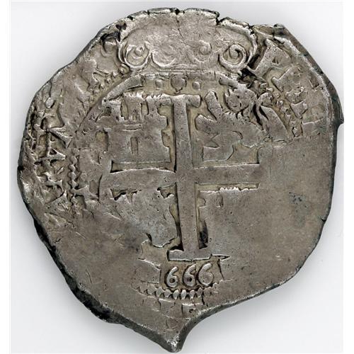 <B>Charles II cob 8 Reales 1666-E,</B></I> KM21, VF with clear dates on both the obverse and reverse.