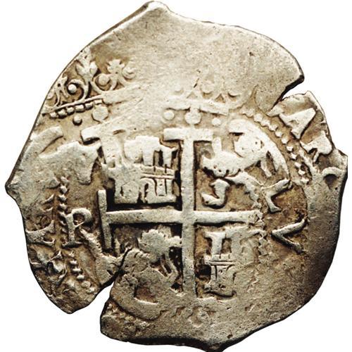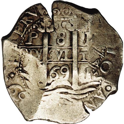 <B>Charles II cob 8 Reales 1669-E,</B></I> KM26, nice VF with very light porosity, Three dates are visible.