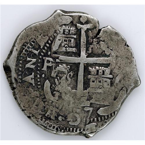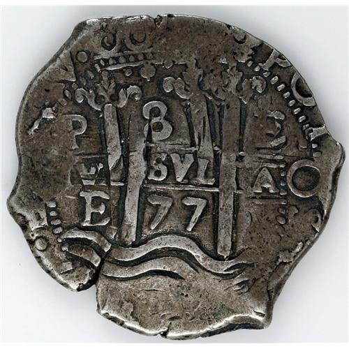 <B>Charles II cob 8 Reales 1677-E,</B></I> KM26, original VF without evidence of saltwater emersion. One and the last 7 of a second date visible.