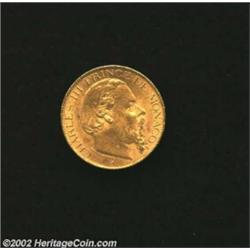 Charles III Gold 20 Francs 1879, K98, AU-UNC, some surface marks on the obverse, still scarce in this grade. Important notice: We expect to be auctioning lots at the rate of 200-250 per hour. Sometimes eBay Premier live bid software cannot keep up with that pace, so we strongly recommend that you place a realistic proxy bid now as insurance to avoid disappointment. Also please note that all Heritage/CAA lots purchased through eBay Premier carry a 20% Buyer's Premium. Please make sure you read the Terms and Conditions.