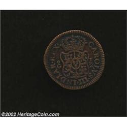 Charles III copper 1/2 Grano 1769, Eagle on cactus with date below/Crowned arms dividing Go-1/2, Vidal Quadras-10303, VF for the issue with some old incrustation. The listing in Vidal Quadras is the only reference that we can find on this exceedingly rare issue. The famous Pablo Gerber Collection contained a 1 Grano that was holed and listed as a pattern. Extremely rare and the first that we have seen. Important notice: We expect to be auctioning lots at the rate of 200-250 per hour. Sometimes eBay Premier live bid software cannot keep up with that pace, so we strongly recommend that you place a realistic proxy bid now as insurance to avoid disappointment. Also please note that all Heritage/CAA lots purchased through eBay Premier carry a 20% Buyer's Premium. Please make sure you read the Terms and Conditions.