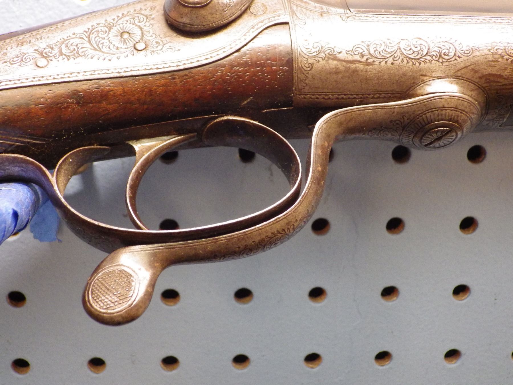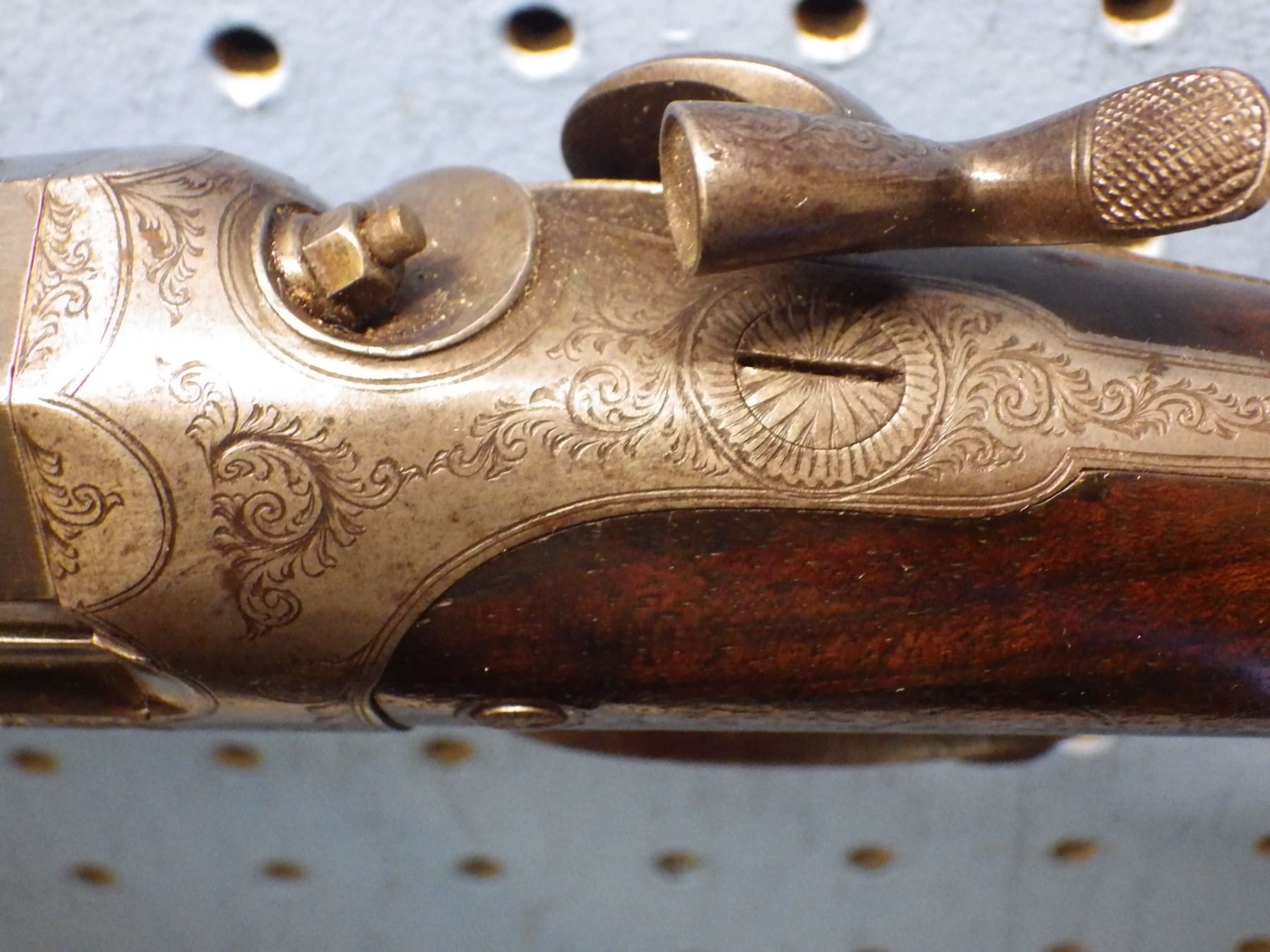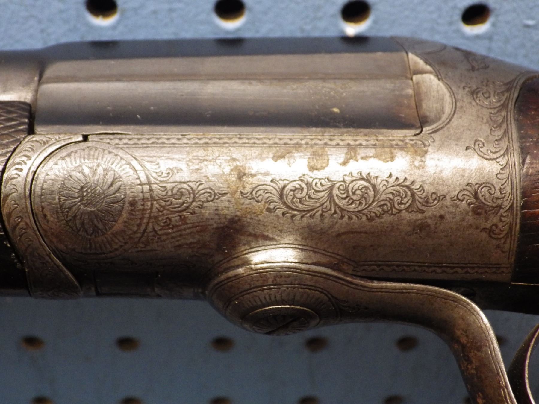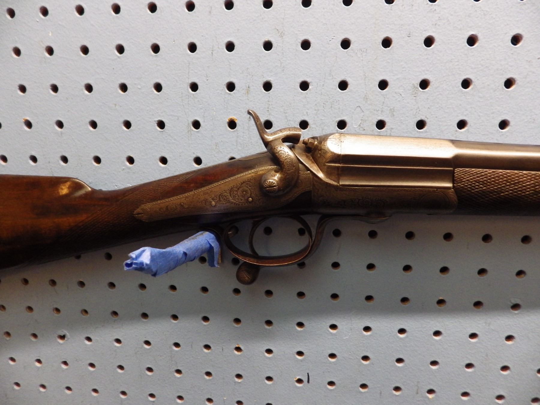 Charles Ingram of Glasgow single barrel side hammer 12 bore Nitro proofed shotgun for 2 1/2" shells. Barrel 28" long, bore bright and shiny with no rust … CONSIGNOR # F - 1. -- BORE CONDITIONS PROVIDED BY CONSIGNOR
