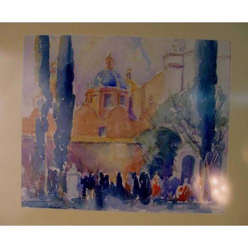 Charles Killgore was from Chicago, where he worked as an artist. He also exhibited at the Penn. Academy of Fine Arts in the late 1920s and early 30s as well as the Art Institute of Chicago. Signed lower right, this scene shows tall trees in front of a walled area with church dome in the background. Good surface condition, site size: 19" wide by 16 1/2". This likely dates to the 1930s or 40s.