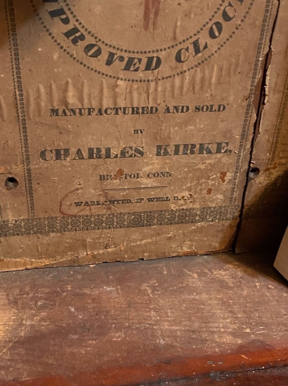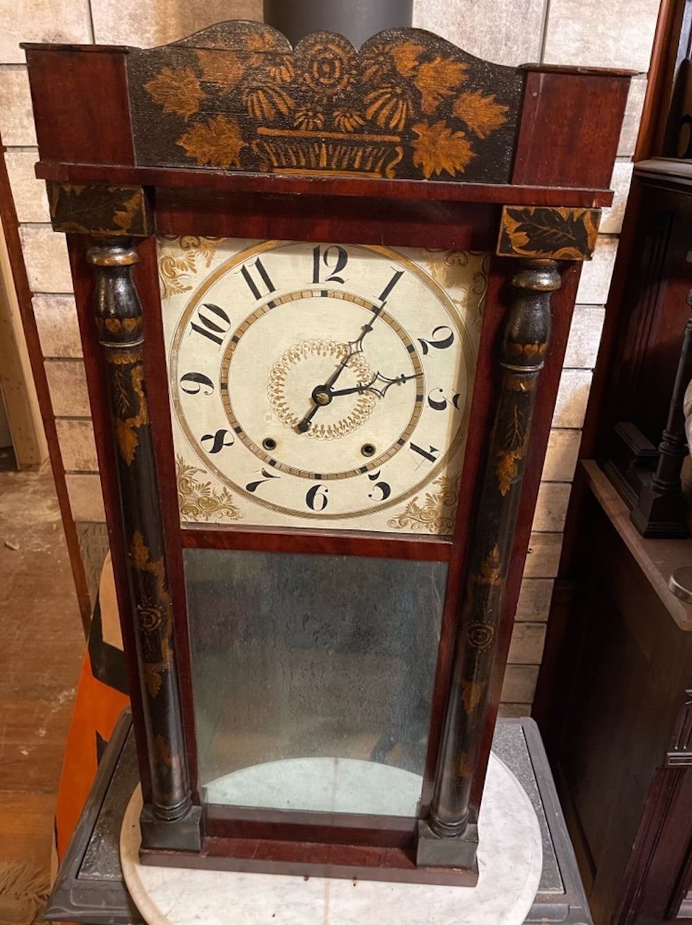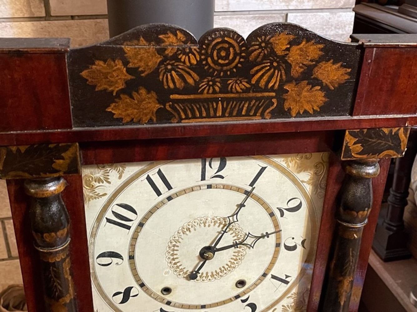 Charles Kirke Shelf Clock, Rare Charles Kirke, Bristol, CT clock, all beautifully stenciled case, hand painted dial, from the lifetime collection.