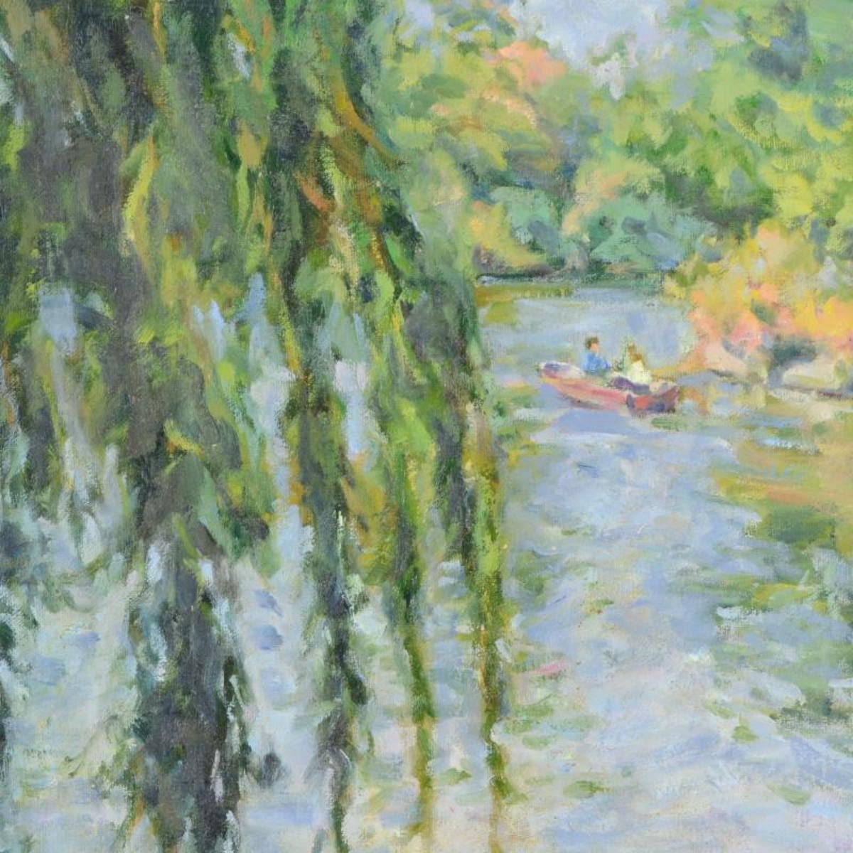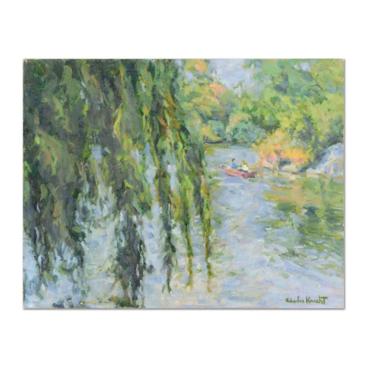 Charles Knecht, "Central Park Lake" Original Oil Painting on Canvas, Hand Signed with Letter of Auth
