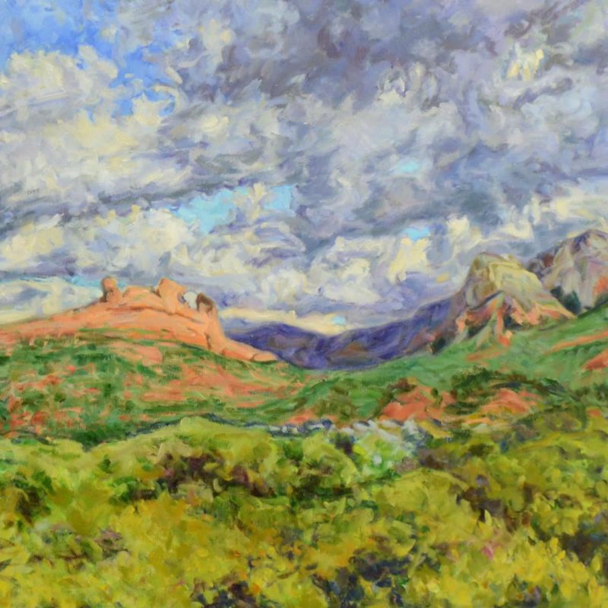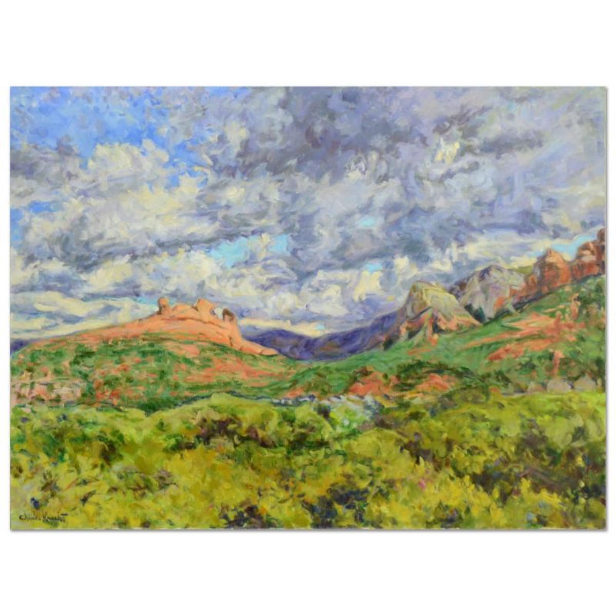 Charles Knecht, "Windy Day" Original Oil Painting on Canvas, Hand Signed with Letter of Authenticity