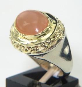 Charles Krypell 18K Gold/Silver Chalcedony Ring.The total ring's weight is 8.9 grams.The size of the Chalacedony is 8 x 12 mm.The measurement of ring's surface is 15 x 19 mm and 7 mm thick. The size of the ring is 6.5