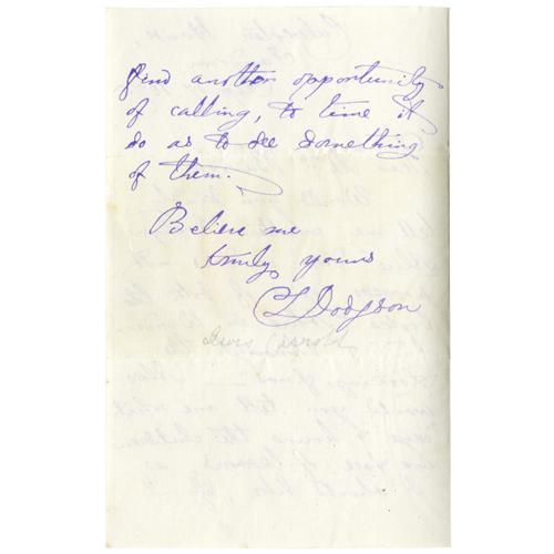Charles L. Dodgson Autograph Letter Signed. Charles L. Dodgson Autograph Letter Signed