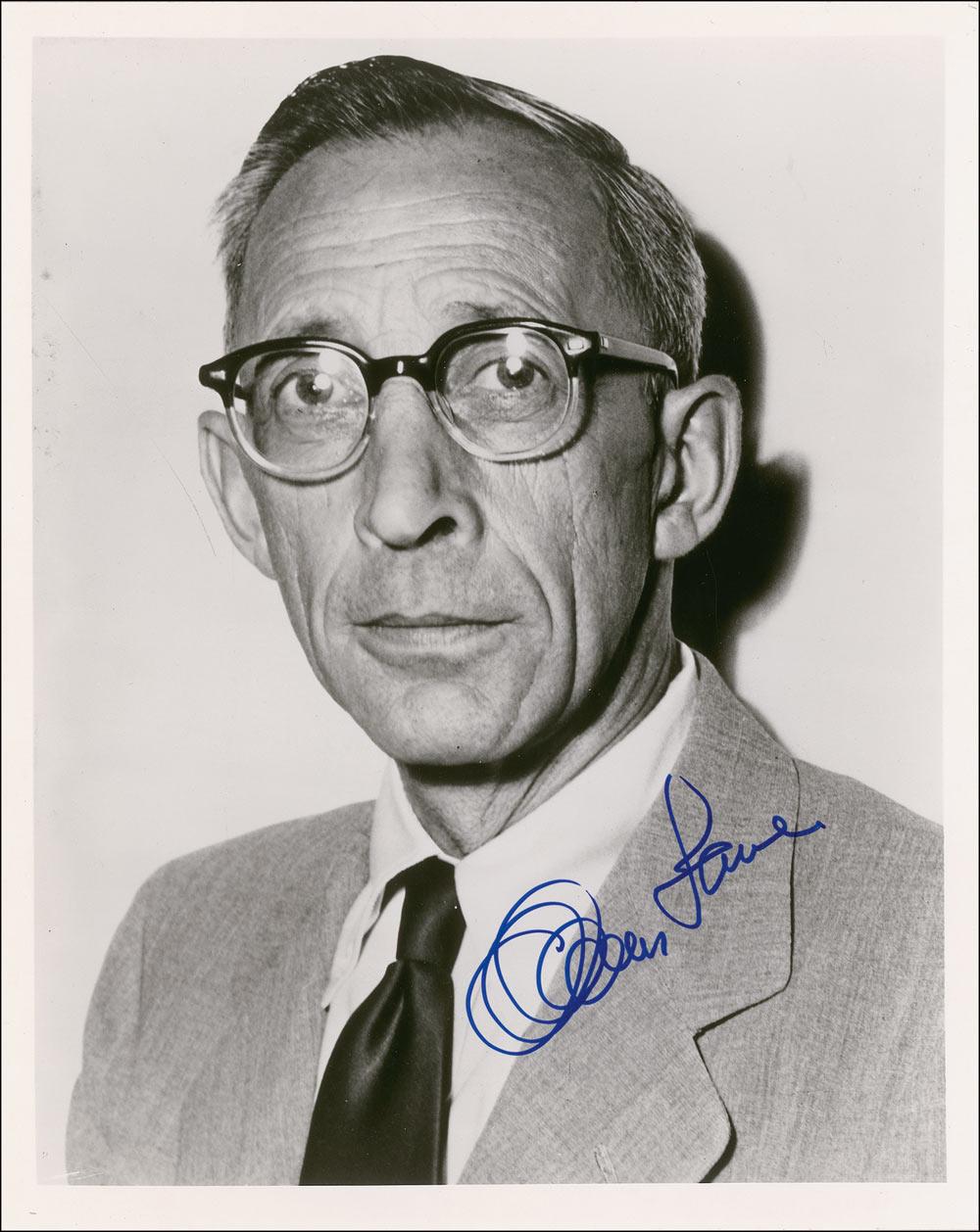 Charactor actor (1905–2007) who appeared in such classics as Mr. Smith Goes to Washington and It's a Wonderful Life (1946). He was also a favored supporting actor of Lucille Ball. Glossy 8 x 10 head-and-shoulders photo, signed in blue felt tip. In very fine condition.