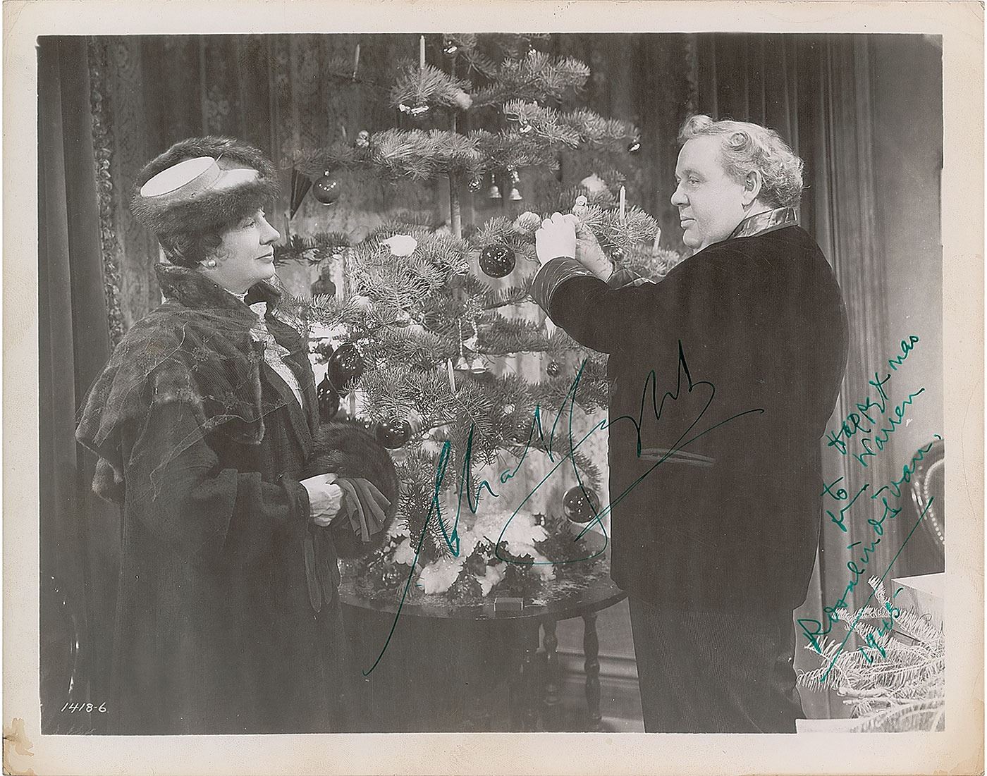 Vintage glossy 10 x 8 photo of Philip and Cora Marshall in the 1944 film The Suspect, signed and inscribed in green fountain pen, "Happy Xmas to Warren, from Rosalind Ivan, 1945" and "Charles Laughton.” In fine condition.