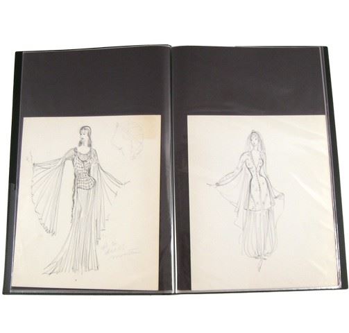 Charles Le Maire Original Costume Drawings For The Robe/Demetrius and the Gladiators/Captain from Castile/And More - The legendary costumer designer, Charles Le Maire, considered the greatest and most innovative of his time, won one of his three Oscars© for the epic "The Robe" (1953), the first film to be shot in CinemaScope. It is considered a triumph of filmmaking in both its directing, editing, photography, art direction, music, stunts, and writing (by then blacklisted Albert Maltz). It's the emotional charged story of Marcellus Gallio (Richard Burton), who is assigned to lead the crucifixion of Christ, and thus is given Christ's robe, which causes him torment for what he has done and a sets him on a search for some kind of redemption. There were many religious epics before, but none with this sense of realism, instead of "DeMille" type pageantry. Special mention has always been made to the costumes of Le Maire. Prints of his beautifully detailed drawings for his creations have been displayed in books, libraries and museums, but rarely has any of his original artwork ever surfaced. That is until this recently discovered cache of his original drawings have become available from his personal Estate. This remarkable portfolio contains Le Maire's original concept drawings from "The Robe", as well as several other films he designed of the same period including "Demetrius and the Gladiators" (1954), which was the sequel to "The Robe", and as a great bonus, initial oversize painstaking pencil drawings and note-concepts for the Tyrone Power, Jean Peters adventure classic about the invasion of Mexico by Cortez, "Captain from Castile" (1947). There are over 45 drawings, sketches, concepts and notes, all in Le Marie's hand. They are all individually sealed in special custom plastic sleeves and housed in his original portfolio. An astonishing find!