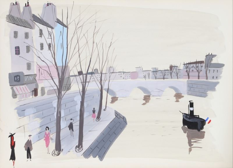 Charles Levier, Paris Seascape, Watercolor Painting